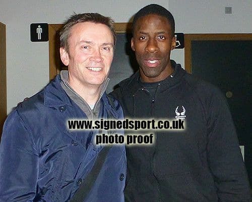 10x8 colour press photo circa 1998 personally hand-signed in black sharpie pen by English sprinter, Dwain Chambers.